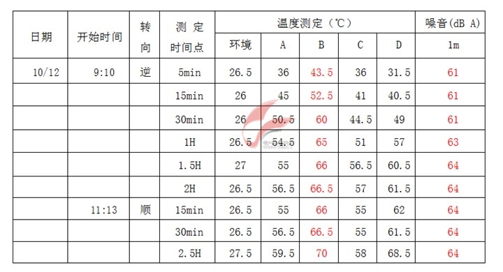 測試過程:減速機(jī)類型:斜齒(加脂量:25g)