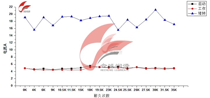 3、電流值取樣規(guī)則如下:每上升下降1000——2000次為一個循環(huán),進(jìn)行取樣,每次 測量10組開閉循環(huán)的電流值,包括上升下降的啟動電流、堵轉(zhuǎn)電流。如此反復(fù)一直持續(xù)到出現(xiàn)故障停止工作或達(dá)到預(yù)期的耐久壽命為止。